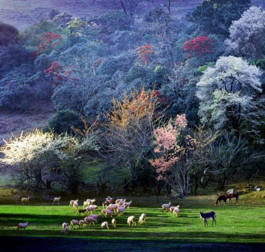 巴拉格宗,位于迪庆藏族自治州西北部的尼西乡境内。它是深藏在香格里拉深处的一块璞玉,令人心驰神往。从海拔最低2100米的河谷,到海拔最高5545米的格宗雪山,峰谷间落差达到3445米。气候垂直变化十分明显,形成“河谷盛夏山区春,高原艳秋雪山冬”的立体景观。