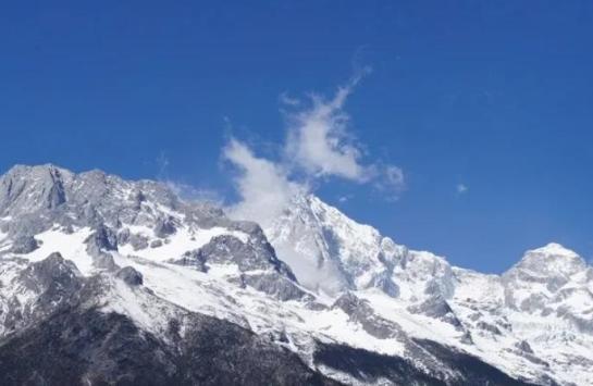玉龙雪山银装素裹,十三座雪峰连绵不绝,宛若一条“巨龙”飞舞,故称为“玉龙”。