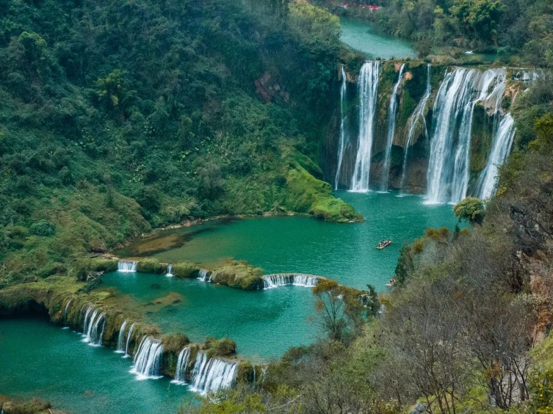 曲靖九龙瀑布群风景区是国家AAAA级旅游景区,位于罗平县城东北处,素有“九龙十瀑,南国一绝”的美誉。依托喀斯特地貌,形成了大小数十个钙化滩和十多级瀑布,各级瀑布姿态各异,或雄浑、或险峻、或秀丽,形状奇特,层层叠叠。