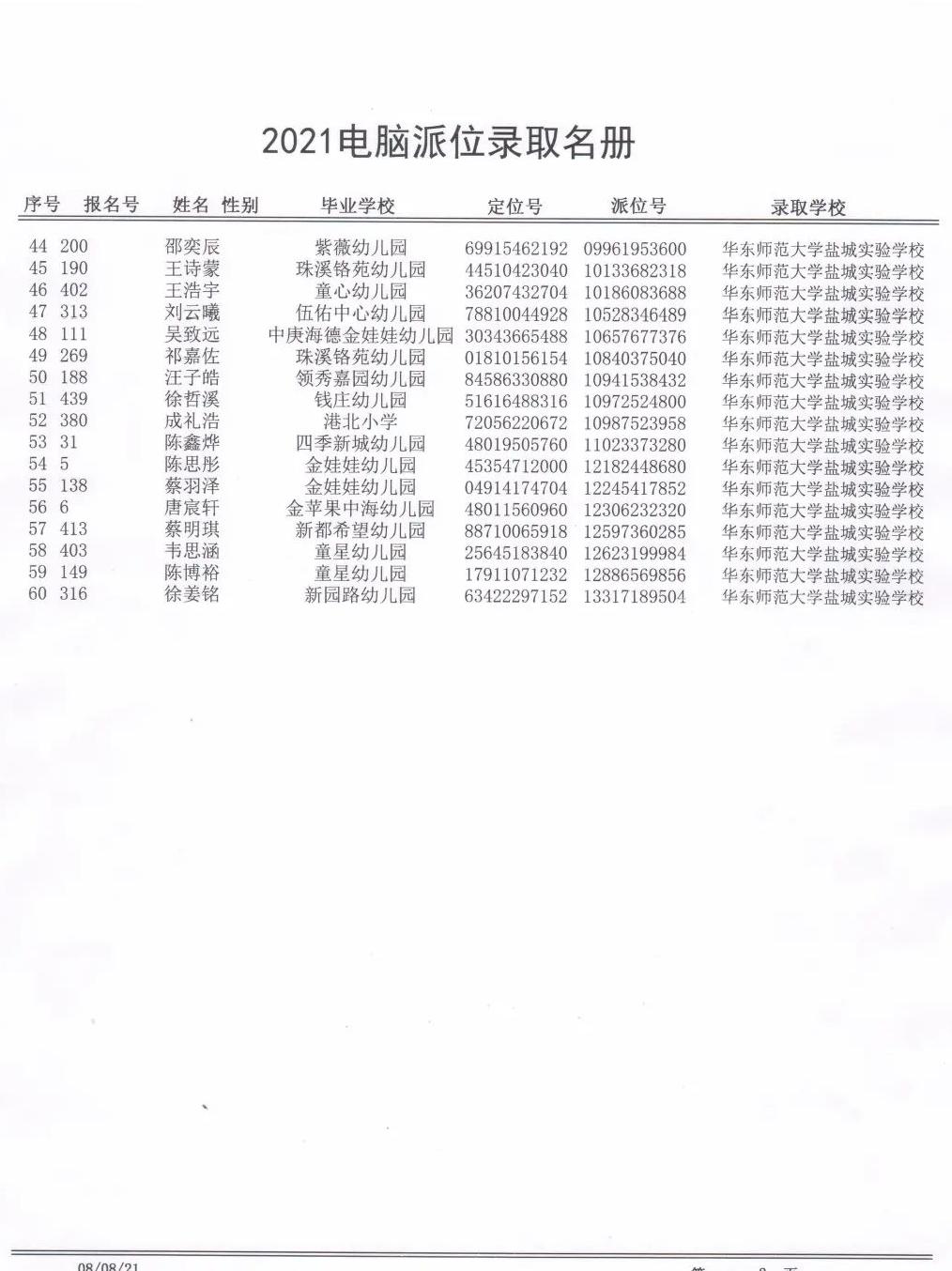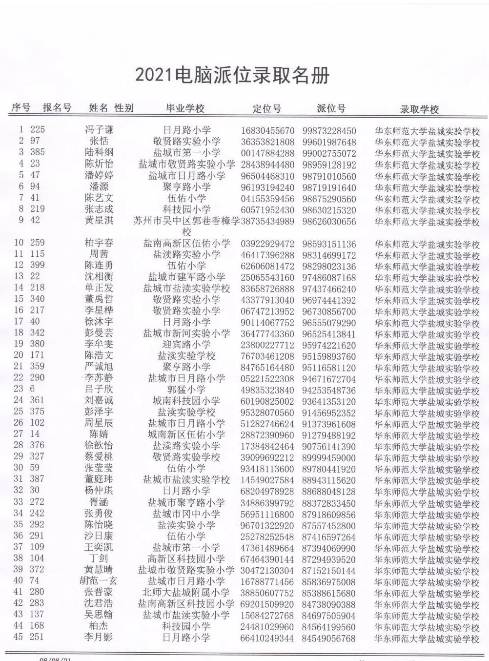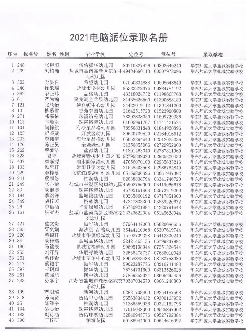 来源:区教育发展中心原标题:《华师大盐城实验学校电脑派位结果出炉,快看看有没有你家娃!》