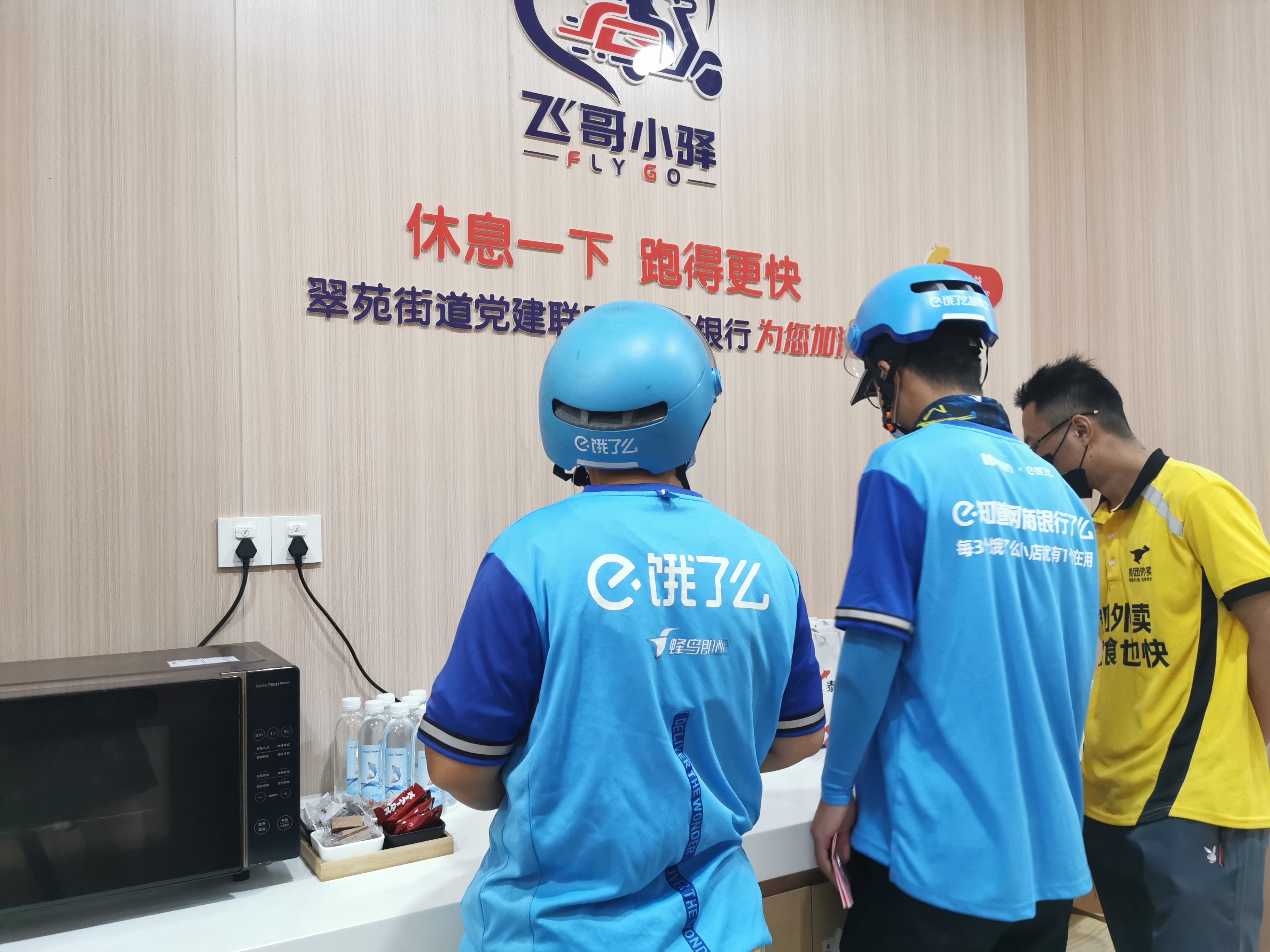 “前几天下午没单子,天热得厉害,回站点休息又太远,我就去了就近的翠苑四区驿站休息,吹吹空调降降温,喝杯水,还可以给手机充充电,真不错!”