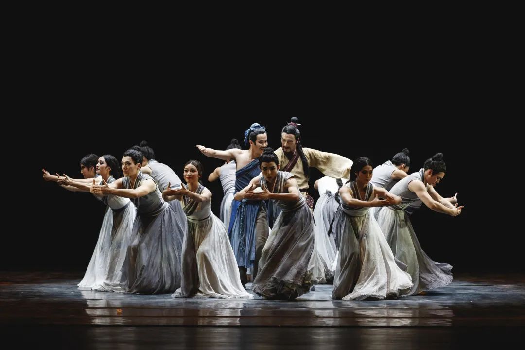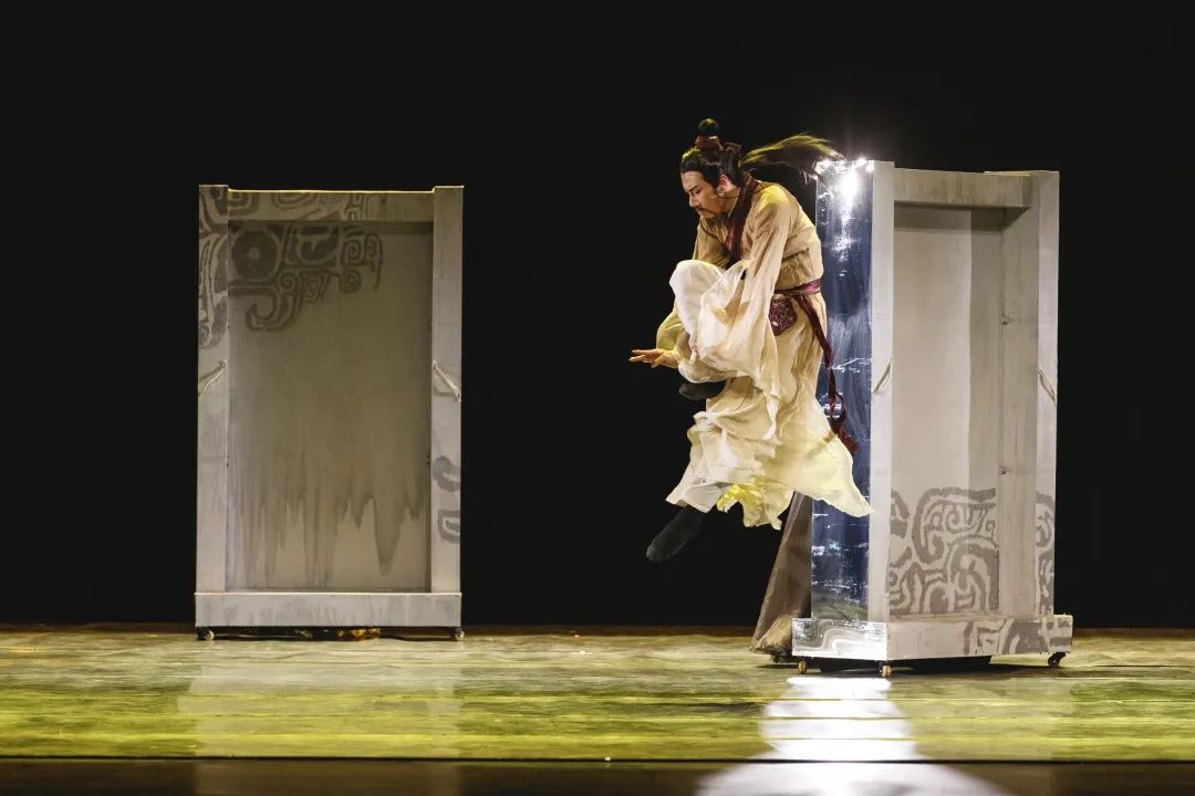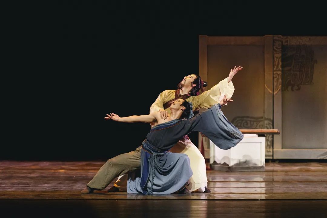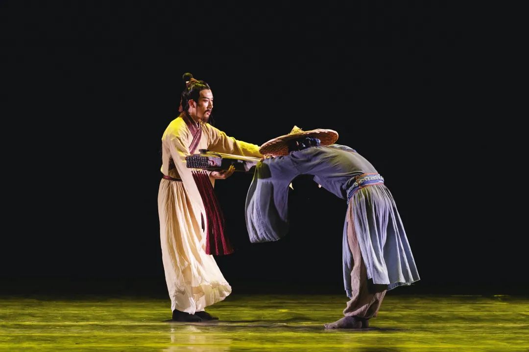舞剧《伯牙绝弦》充分运用当代审美表达,在舞台上再现伯牙与子期的知音之情,以现代人的视角解读“知音”,进而诠释“信任”“理解”与“欣赏”。—