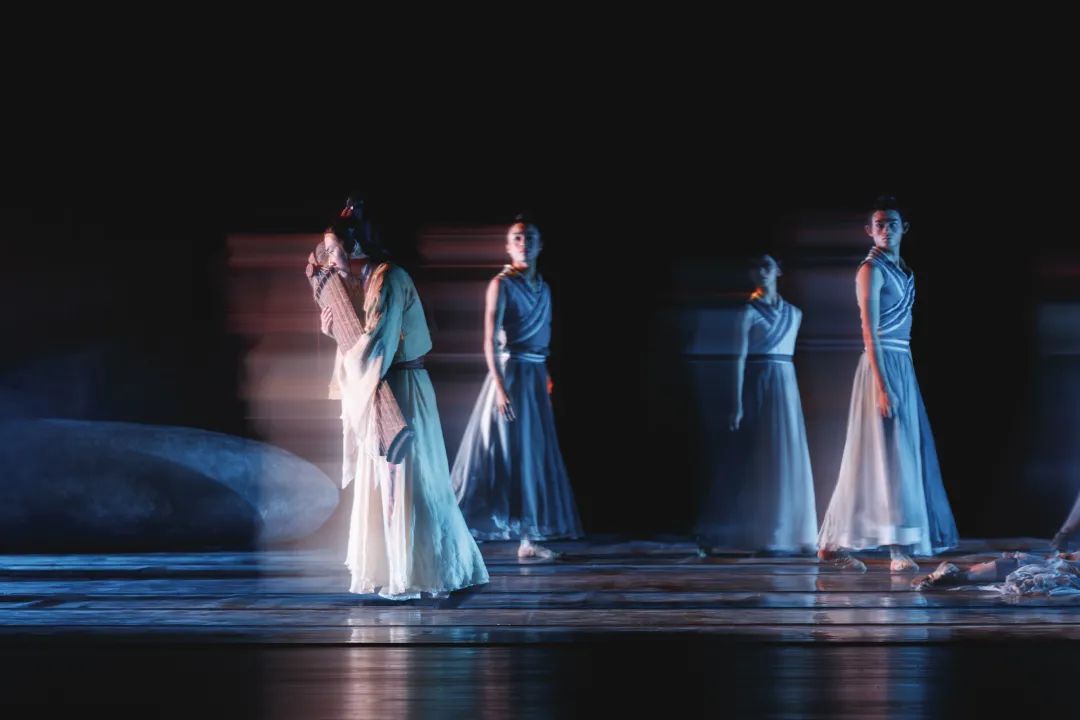 以中国意境为基础的艺术特色融入在服饰、色彩、舞蹈语言的设计编排中。女舞者们伴着琴声翩翩起舞,以古典舞身韵发展而成的动作语汇为主要表现手段,展现女性的优美,为舞剧营造了一个充满“诗意”的氛围。