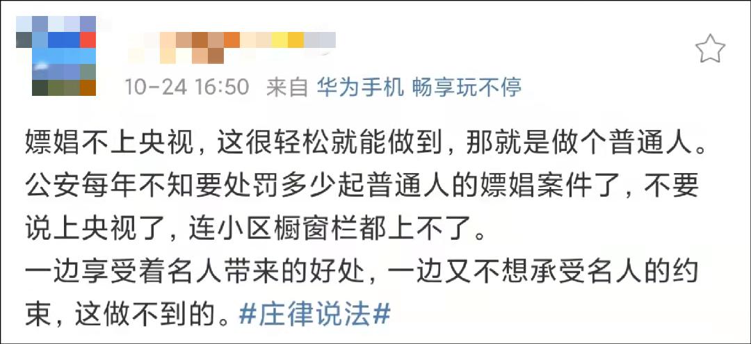 田宁宁指出,不仅仅是嫖娼,即便是公众人物存在吸毒、赌博、逃税乃至其他违法犯罪行为,上述结论也不会有变化。