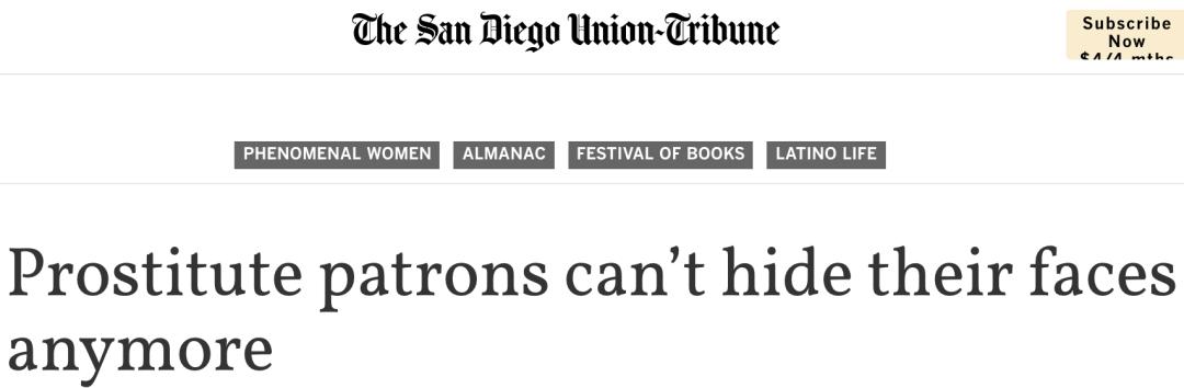 美国媒体2012年的报道:地方扫黄新招,嫖客一旦落网,名字和照片就会公布在互联网或报纸上,甚至家人也会收到政府的通知信函以示羞辱。