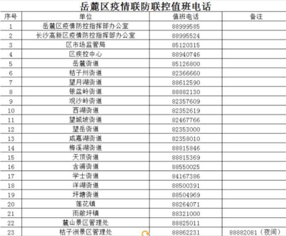 岳麓区新冠肺炎防控指挥部最新值班电话