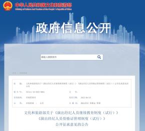 ▲18日,为加强演出经纪人员队伍建设,提高演出经纪人员规范化管理水平,文化和旅游部研究起草了《演出经纪人员继续教育管理制度(试行)》等管理规定,该管理制度拟规定,演出经纪人员每年应当通过演出经纪人员管理与服务平台完成20学时的在线继续教育。文化和旅游行政部门组织培训不得收取费用。