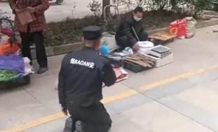 ▲近日,四川成都。一名保安当街下跪请求摊贩离开。附近商户顾女士称,这些人摆摊的位置不允许摆摊,保安多次提醒但没有效果,就给他们下跪了,跪下后有人搬走,也有人无动于衷,保安离开后又有一群人在那里摆摊,觉得他们很冷漠。