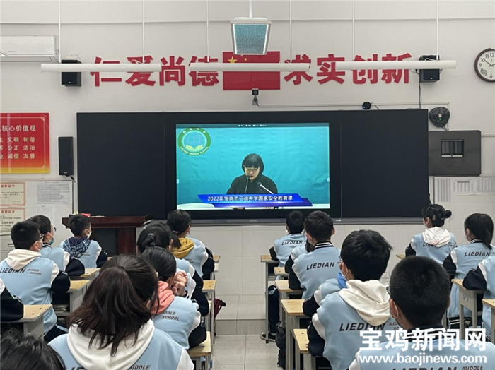 “让我们一起砥砺前行,心跳和脉搏时刻与祖国同频共振!”在金台区三迪中学,学校通过多媒体教学方式,组织全校师生同上一堂国家安全教育课。