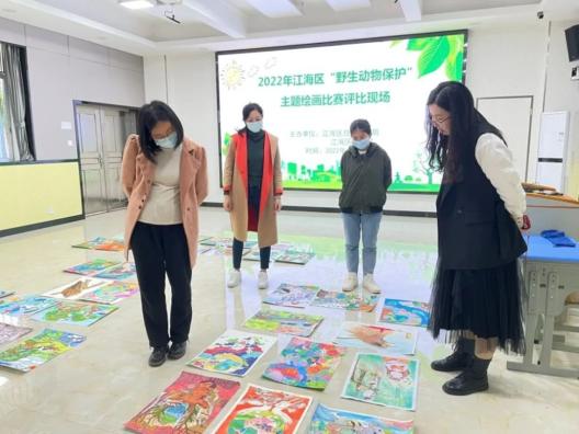 绘画比赛活动评审现场这次主题绘画比赛活动,提高了广大青少年对国家、省重点保护野生动物物种及其栖息地的认识和保护意识,充分发挥了“小手拉大手”的积极作用,通过带动家庭影响社会,进而凝聚起我区保护野生动物的强大合力。