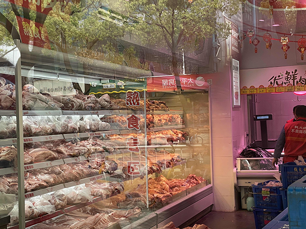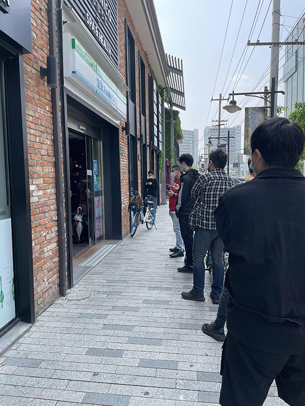 开在亭知路上的一家韩国超市也有一些酱菜、宽粉、面条、肉类等食品供市民们挑选。记者看到,这家店的工作人员就站在门口,控制客流,维持秩序。