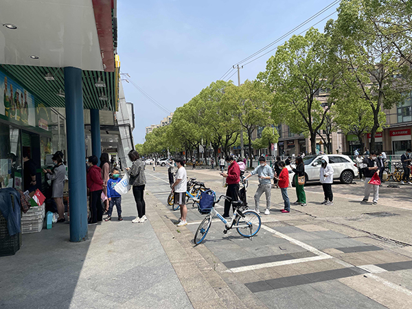 直击松江防范区:商家“出两人进两人”控流,居民有序排队购物