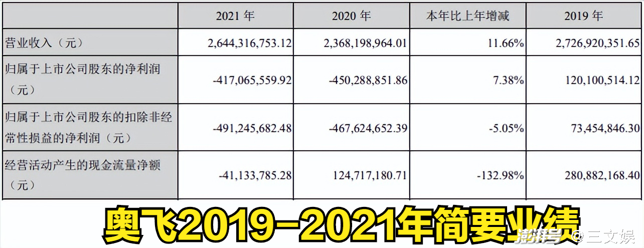 4月29日,奥飞娱乐发布2021年年度报告。年报显示,奥飞2021年收入26.44亿元,同比增加11.66%;净利润为-4.17亿元,2020年亏损4.5亿。