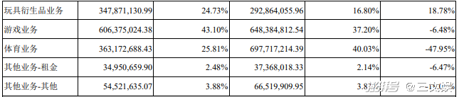 公司的业务分为游戏业务、足球俱乐部业务和玩具业务。