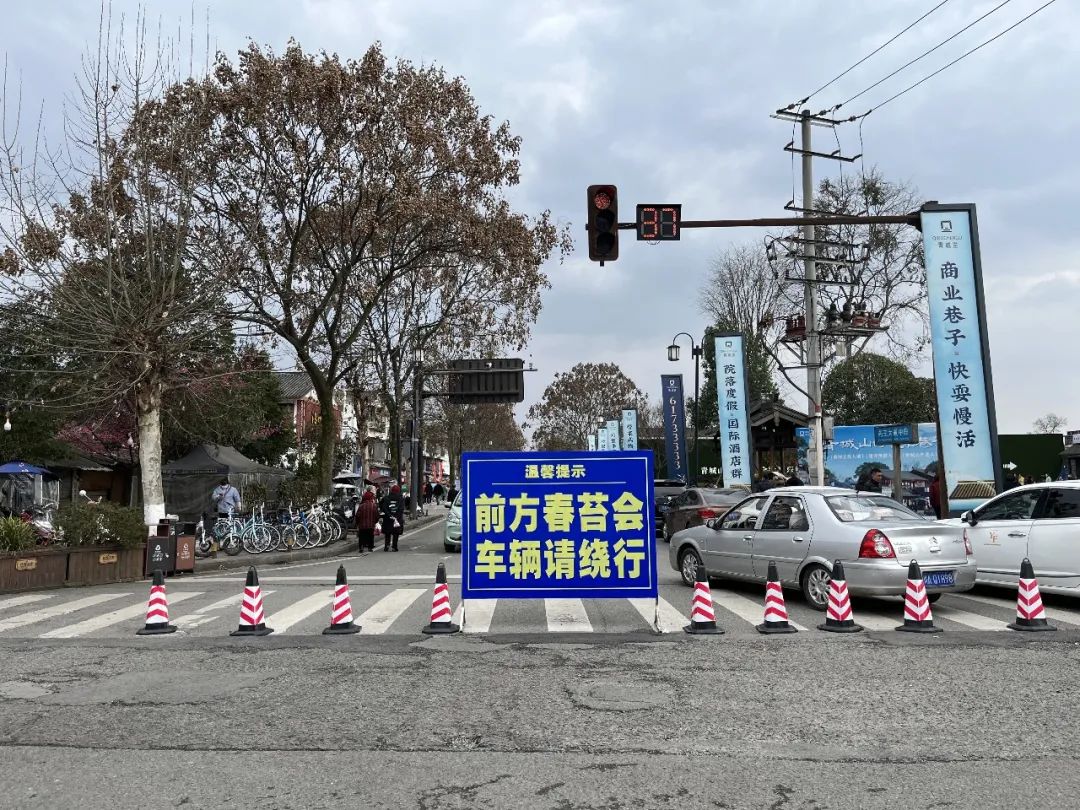 去青城山的那个周五,路过温江踏水镇时,一条明亮到底的小路引起我们的注意,我们猜测这是温江的春苔会。次日返程时的依旧热闹、水泄不通让我们再次确信,这就是春苔会。
