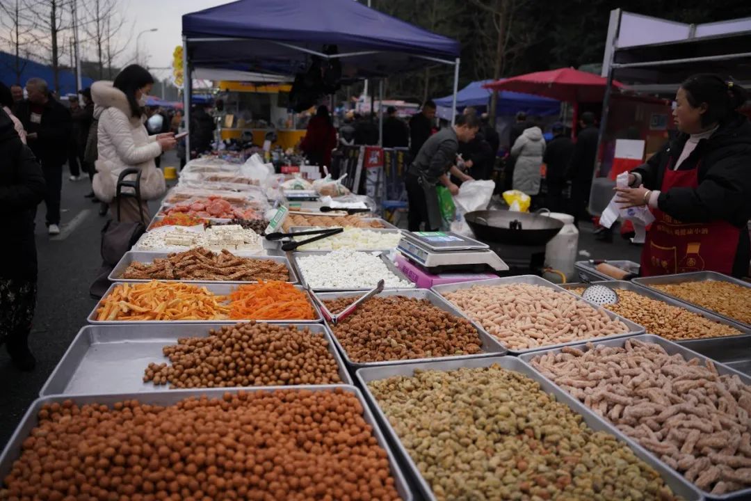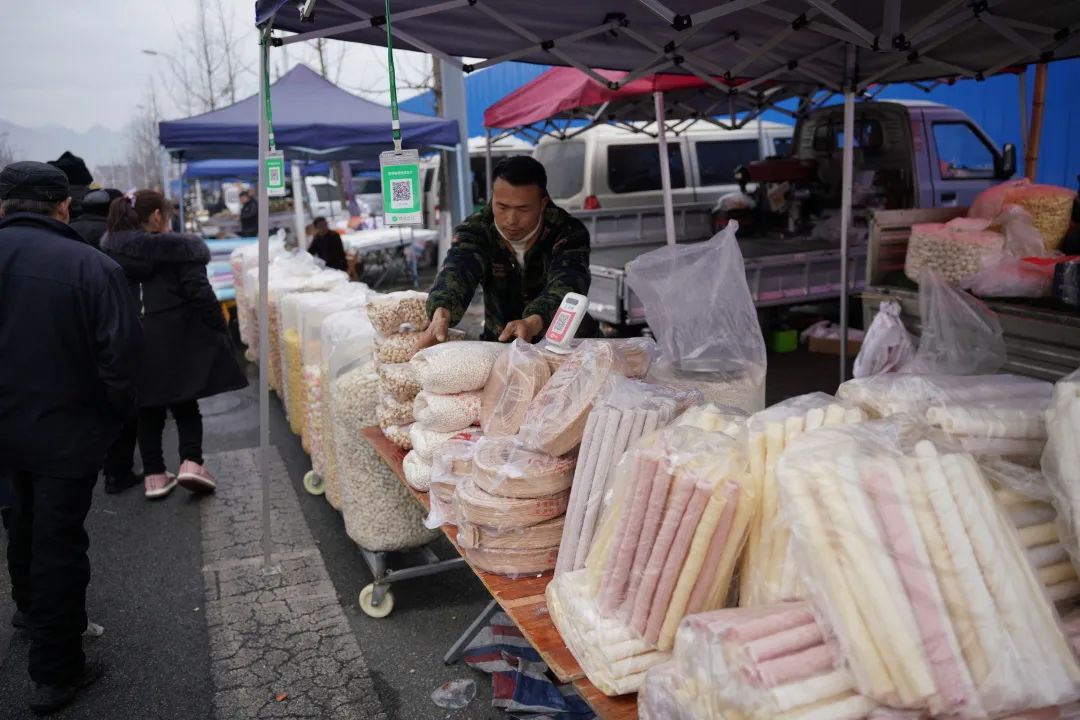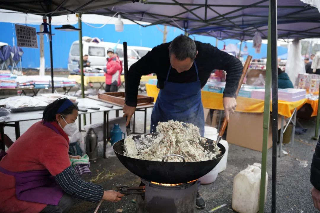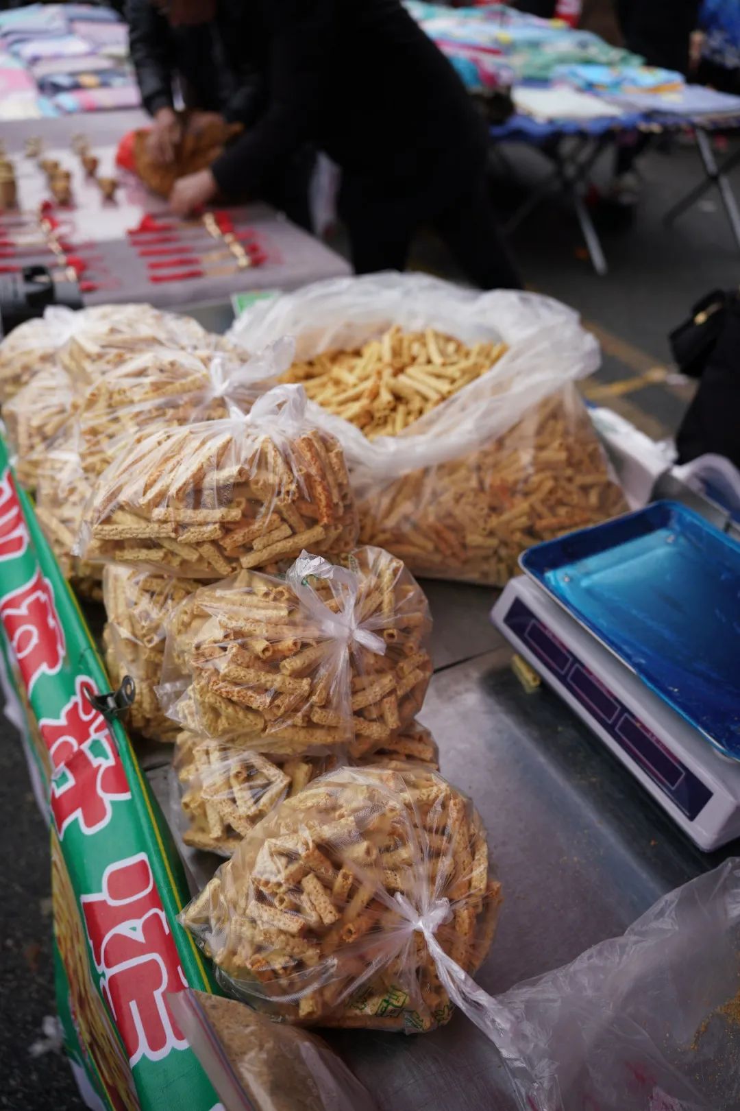 从其他场镇来的小摊卖着米花酥,现场炒制真材实料,不怕吃亏上当,童叟无欺。