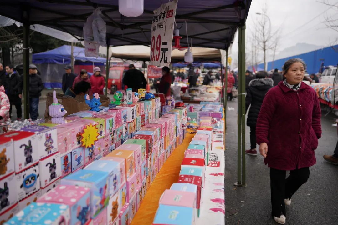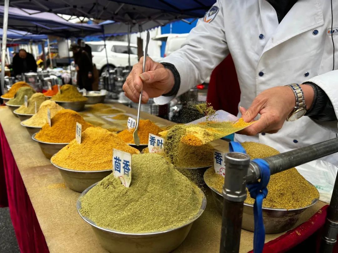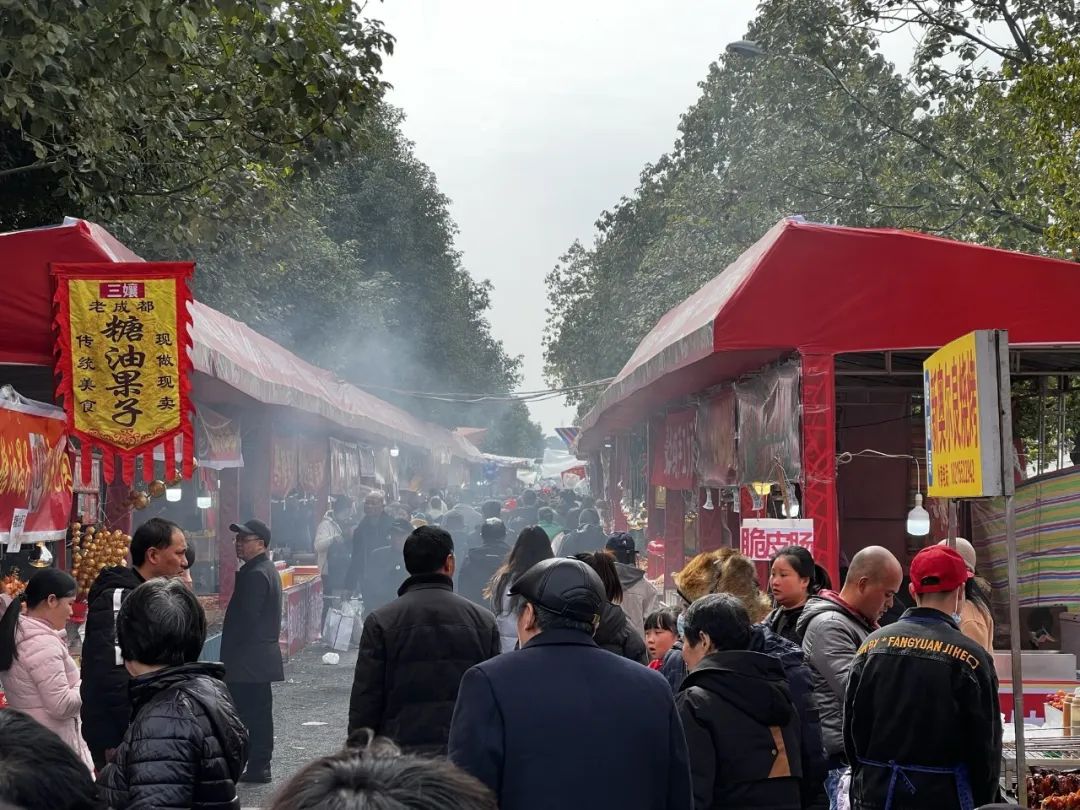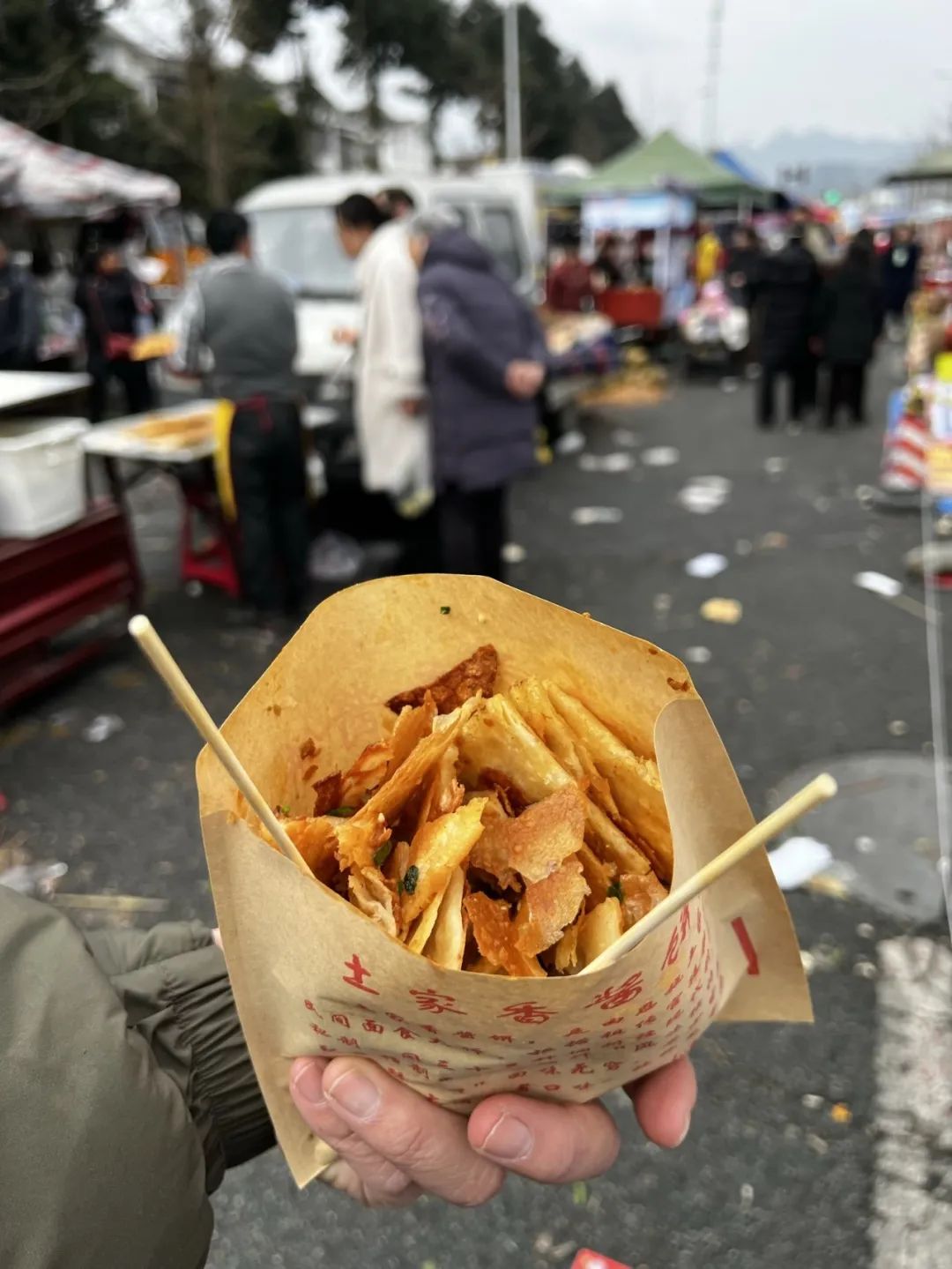 从其他场镇来的小摊卖着米花酥,现场炒制真材实料,不怕吃亏上当,童叟无欺。