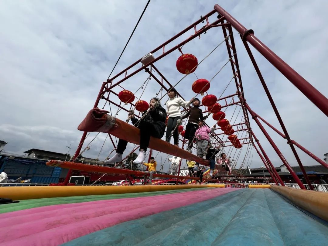 这里有5个以上大型充气蹦床,就是有城堡有滑梯那种,有旋转塑料马,有气球射击,有套圈圈,有碰碰车,有陆地吊绳蹦床,有小型过山车,有大型秋千......名字都是我乱取的,但和游乐项目八九不离十。