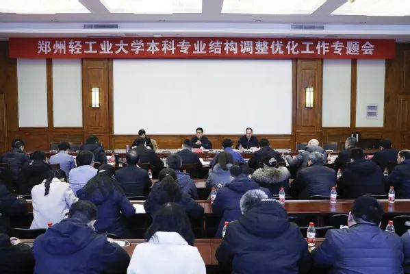 ■1月17日,郑州轻工业大学召开本科专业结构调整优化工作专题会。校党委书记黄荣杰、校长魏世忠、副校长白艳红出席会议,相关职能部门、各二级学院负责同志等相关人员参加会议。白艳红分析了学校目前专业结构现状及面临的问题,解读了教育部和教育厅关于专业结构调整优化的政策要求,通报了学校专业调整优化已开展的工作,并对下一步专业调整优化重点工作进行了安排部署。17个有专业设置的学院院长分别从师资队伍、招生、就业、研率、建设现状、调整优化方案和建设规划等方面汇报了各自学院的专业调整优化方案。