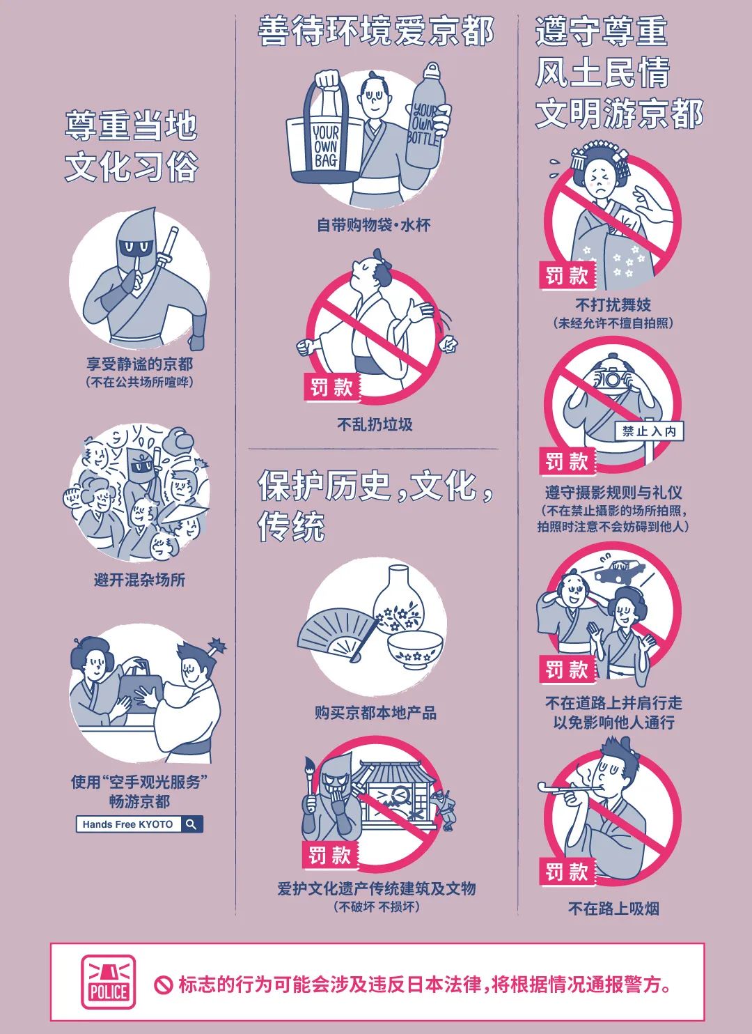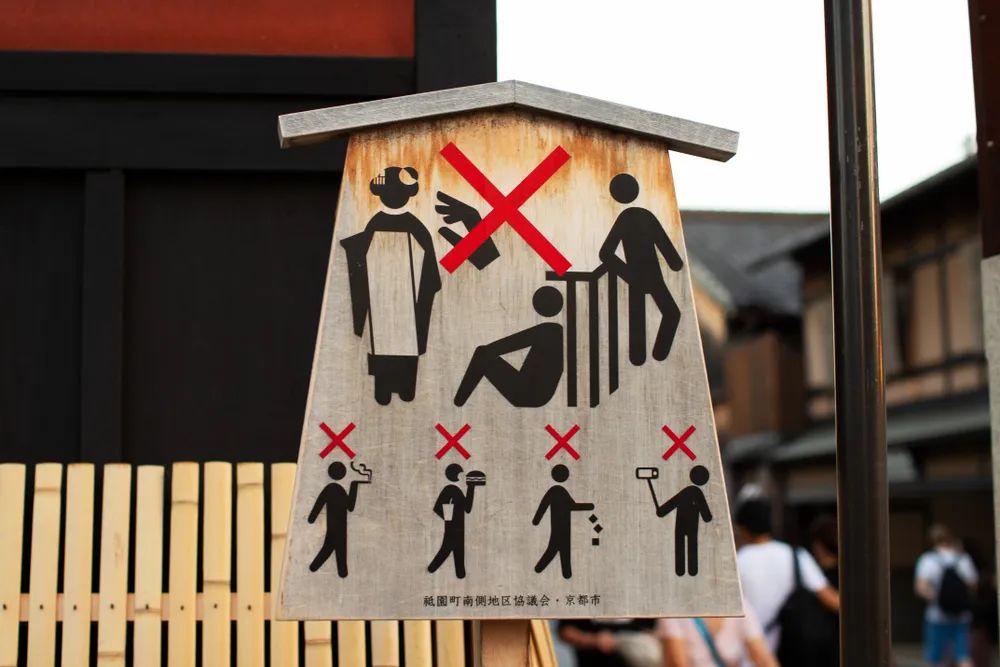 京都率先开出重罚政策,特别针对在衹园一带的私人小巷,为保护艺妓这一传统文化,禁止游客进入,违者重罚一万日币,今年4月开始执行。