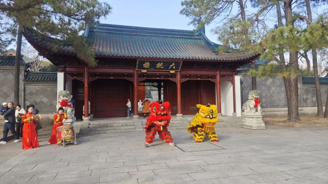 在大观楼前的省亲别墅广场上,一场热闹的舞狮彩排正在进行。只见金色醒狮时而腾跃翻滚,时而俯首摆尾,动作灵活矫健。恰逢广东游客唐女士经过,她驻足观看后露出惊喜的笑容。“在我们广东,舞狮是过年必不可少的传统节目。没想到在上海也能看到这么专业的舞狮表演,让我倍感亲切。能在这样富有江南特色的园林里欣赏到,别有一番韵味。”唐女士表示。