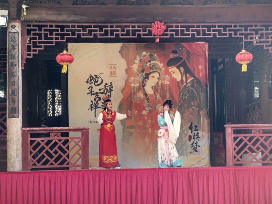 除了喜庆的舞狮和古筝演奏,园内古戏台还将上演精彩戏曲,届时京腔昆韵、越调吴音,将让游客在婉转悠扬的唱腔中,领略传统戏曲的独特魅力。