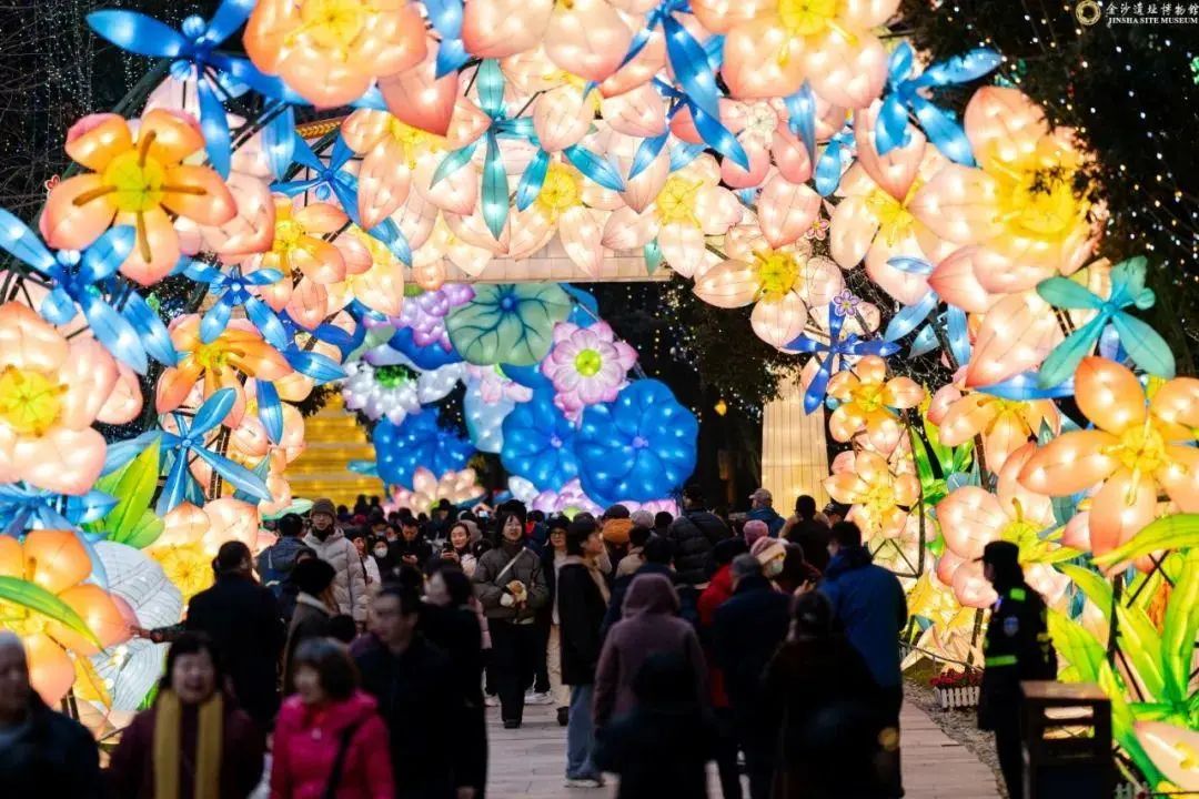成都博物馆、成都金沙遗址博物馆、成都市美术馆、成都杜甫草堂博物馆文博、艺术大展以及70余场社教活动、专题讲座,掀起了一场“博物馆里过大年”的文化热潮,约满、售罄成为今年春节成都文博系统的关键词。其中,在成都金沙遗址博物馆开启的2025成都金沙太阳神鸟节通过古希腊大展、璀璨灯组等把世界文明与中国传统春节的喜庆祥和气氛相融合,吸引游客近22.9余万人次。