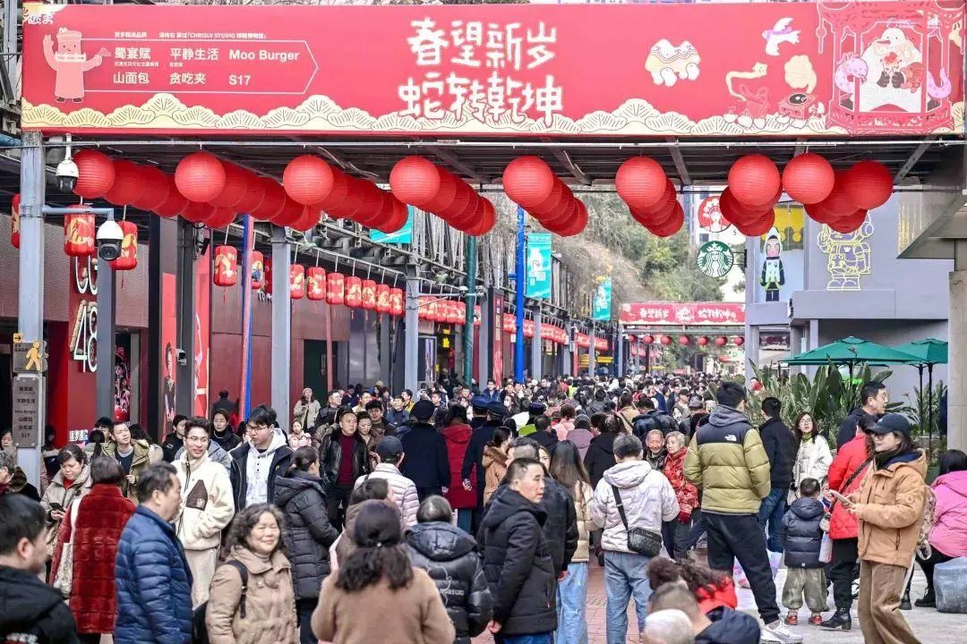 特色商圈更是点燃新春消费热力。春节期间,成都开展“好买迎新春——乐购成都”活动,举办“年味天府 气象万千”百家商圈联动贺新春消费月。交子公园、春熙路、东郊记忆等核心商圈推出超千万元优惠活动,交子商圈SKP销售额同比增长12%,春熙路商圈客流量增长5.8%,东郊记忆商圈营收增长10.9%。春节期间成都市215条特色商业街区累计客流量突破4000万人次,同比增长5.4%,实现营收约120亿元,增长5.8%。