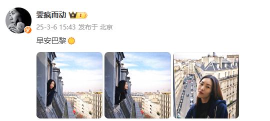3月6日,刘雯工作室晒出3张刘雯在巴黎的照片,并配文:早安巴黎。