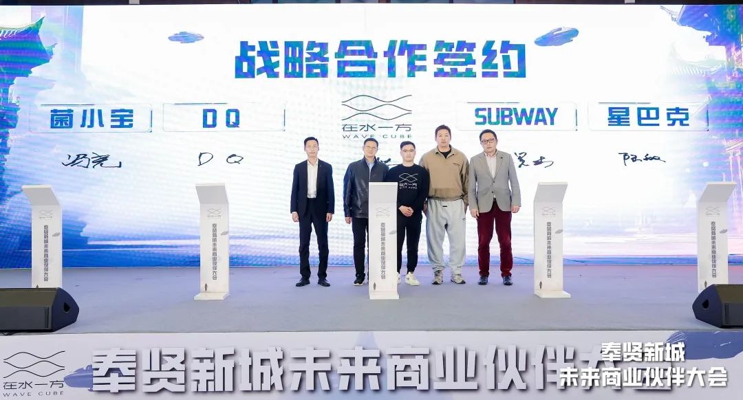 在水一方科幻馆代表与菌小宝、DQ、赛百味、星巴克代表进行战略签约。