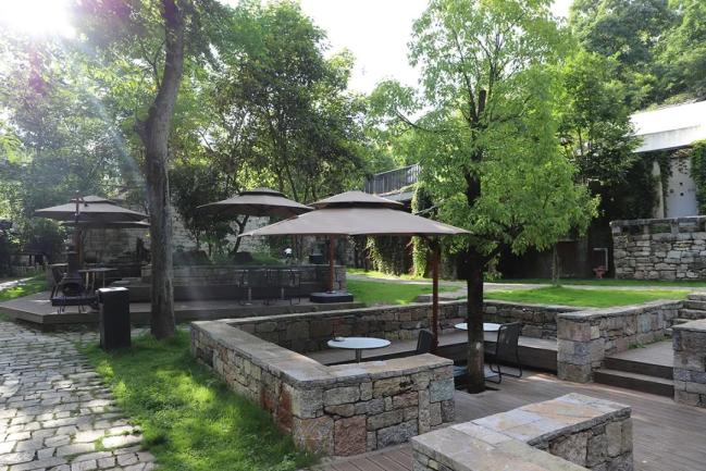 依山傍水,层层叠叠的石屋错落有致。在距离黄果树大瀑布仅有5公里处的传统村落石头寨普叉村,有一家精品度假民宿——匠庐·村晓,整体占地面积70亩,共有38间客房,完整保留了安顺布依族建筑风貌和村落文化,被誉为“小而美的避世民宿集群”。