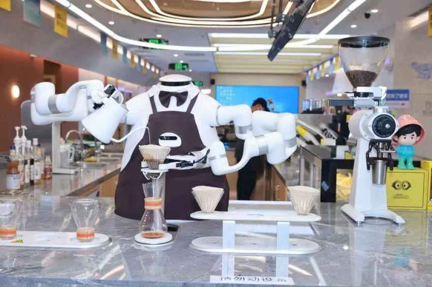 在中国移动雄安科技创新体验中心咪咕咖啡店,一位戴着黑领结穿着黑围裙的“AI咖大师”行云流水地称量、磨豆、倒入咖啡粉、注入热水,一杯香喷喷的手冲咖啡几分钟就能搞定。“AI咖大师”经过百万级视觉数据训练、3万小时的双臂测试,高精准还原了咖啡大师手冲手法,每一杯咖啡都是金牌品质。