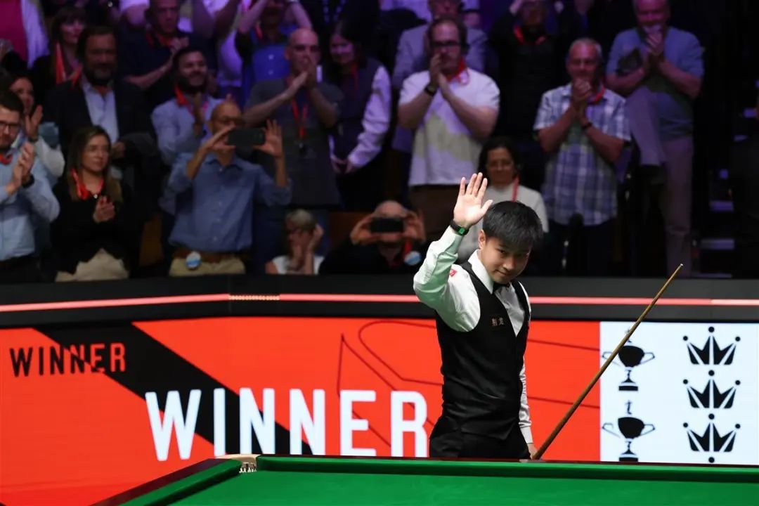 赵心童在比赛后向观众致意“黑马”新星创造传奇历史