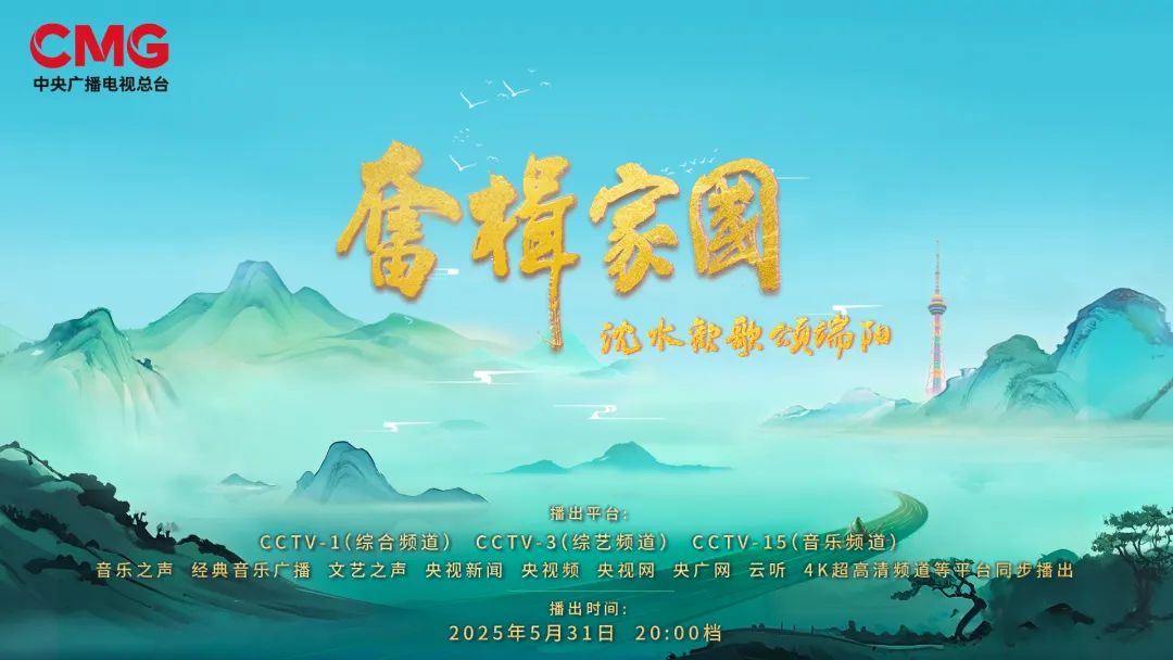 5月31日20:00档,中央广播电视总台2025端午特别节目——大型交响诗《奋楫家国 沈水欢歌颂端阳》将在综合频道、综艺频道、音乐频道、音乐之声、经典音乐广播、文艺之声、央视新闻、央视频、央视网、央广网、云听、4K超高清频道等平台同步播出。