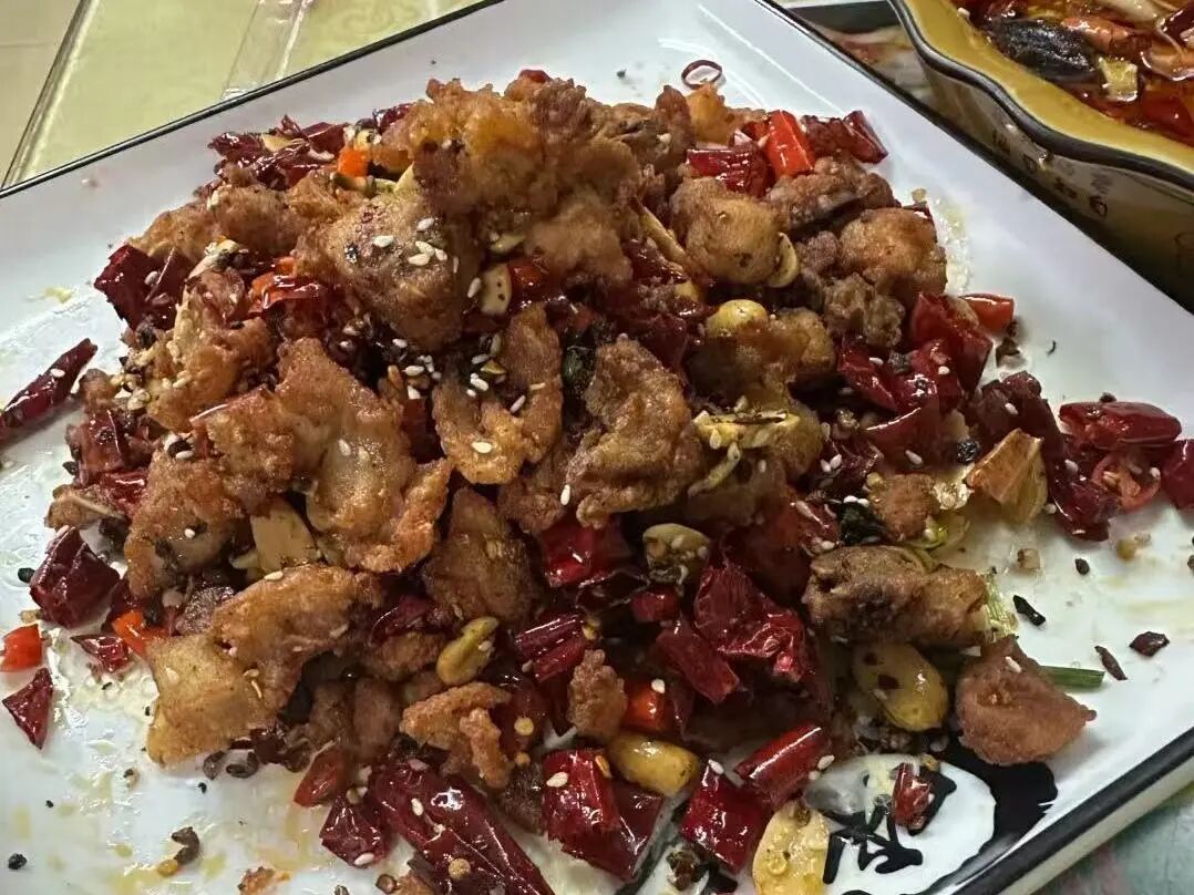辣子鸡:外酥里嫩的鸡块与干辣椒、花椒一起爆炒,香辣酥脆,越吃越香。
