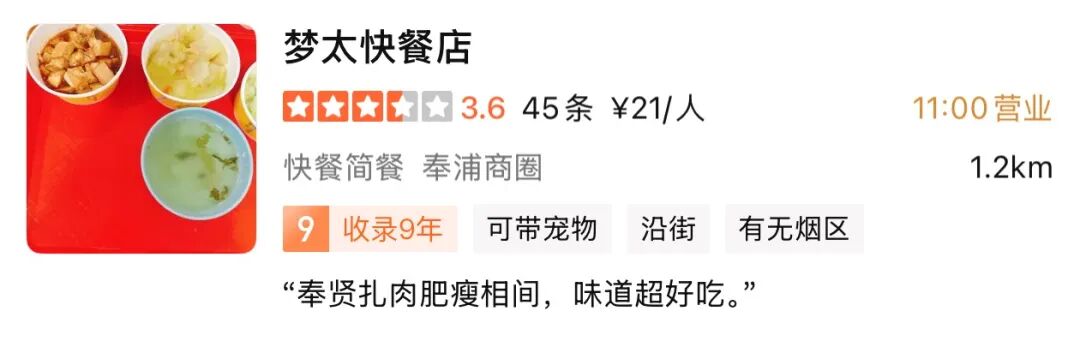 “梦太快餐”已有9年历史,坐落于奉浦街道沪杭公路1761号。