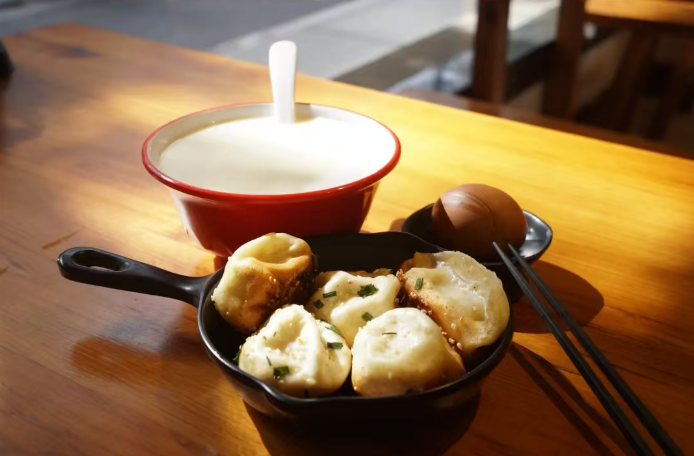 生煎:底部煎到金黄酥脆,一口下去“咔嚓”作响,上半部分松软,肉馅鲜嫩多汁,轻轻一咬就爆汁。