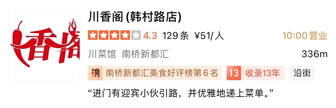 “川香阁”已有13年历史,位于奉浦街道韩村路582号。