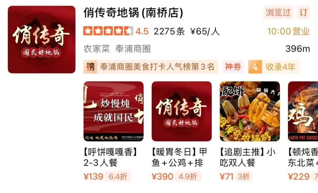 俏传奇地锅鸡已有4年历史,位于奉浦街道环城东路528号。