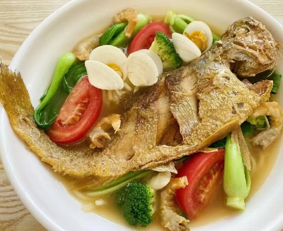 黄鱼面:汤底浓郁不油腻,面条筋道有嚼劲,一碗下肚,整个人都被安抚了。