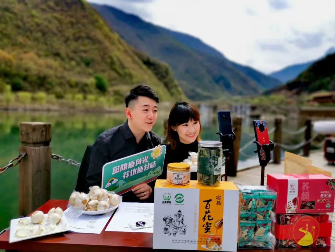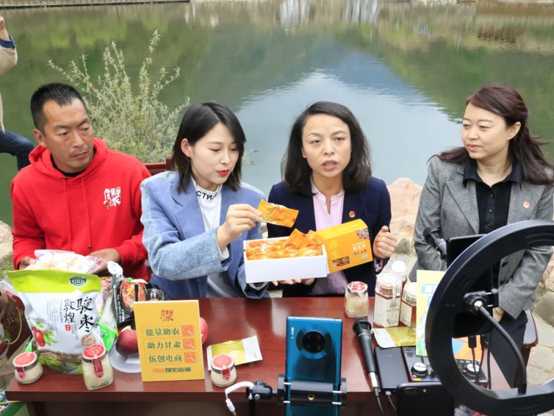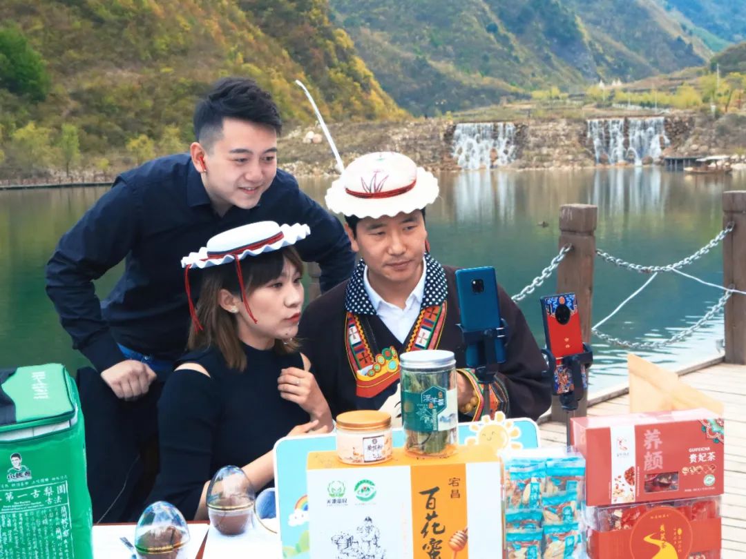 活动现场,来自全省各地的20个青年网红主播团队在直播间内为家乡代言,大力推销当地特色产品。与会领导化身“网红”,在直播带货现场互动介绍产品,有效提高产品及其产地的知名度和曝光度,直播间以风景秀美的鹅嫚沟为直播背景,也更具现场感和体验感,引来众多网民围观,有效激发了消费需求。直播短短1个小时,累计在线观看3万多人次,现场销售百合、苹果、粉条、蜂蜜、木耳、香菇、中药材等特色农产品70余种,销售额达82万。