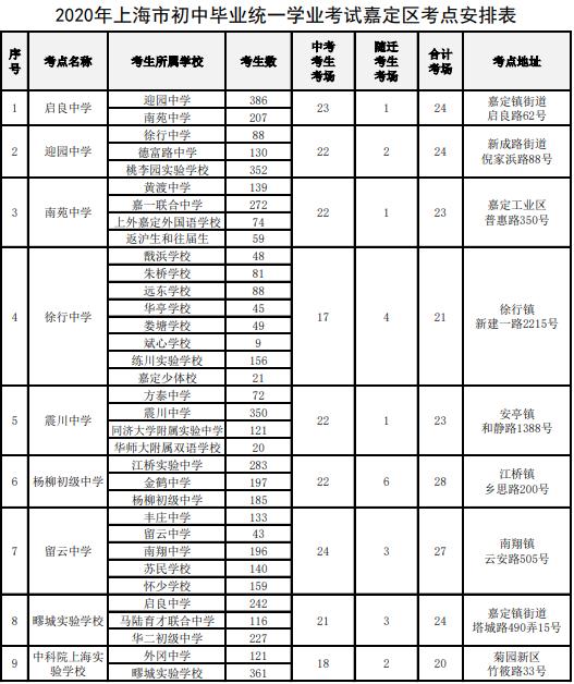 上海中考及初中学业水平考6月27-29日举行!嘉定有9个考点