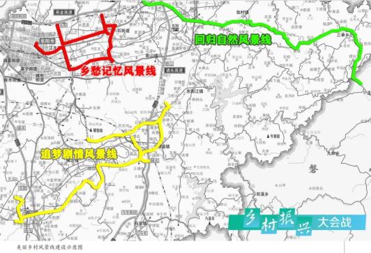 三条风景线建设按照“精心规划、精致建设、精细管理、精美呈现”的要求,外连周边县市、内连城区与重点乡镇、衔接美丽乡村旅游专线,依托区域特色资源和生态环境优势,通过创新建设模式,整合国企力量参与,全面开展美丽乡村风景线建设,打好环境建设、风貌提升、产业植入组合拳,实现美丽乡村串珠成线,进一步提升美丽乡村建设水平。