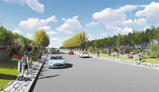 值得一提的是,在回归自然风景线的设计中,引入了“海绵绿道”的城市新概念,将道路绿化设计成“海绵”,即在适应环境变化和应对自然灾害等当面具有良好的“弹性”,下雨时吸水、蓄水、渗水、净水,需要时将蓄存的水“释放”并加以利用,从而让绿道拥有良好的自然存积、自然渗透、自然净化和自身生长等功能。