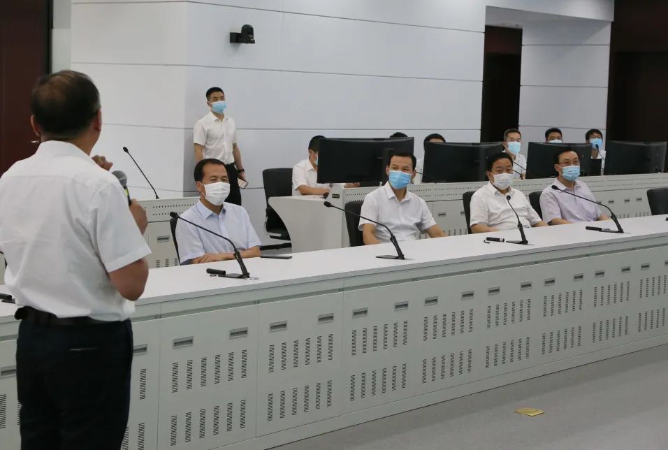 张建强一行参观中铁大桥局工程指挥中心,听取了集团公司副总经理季跃华关于工程管理信息化建设情况汇报。