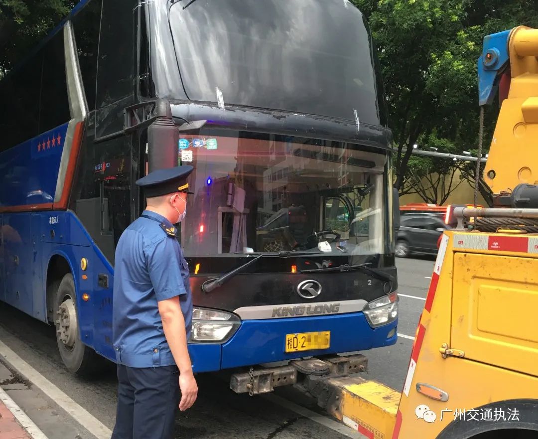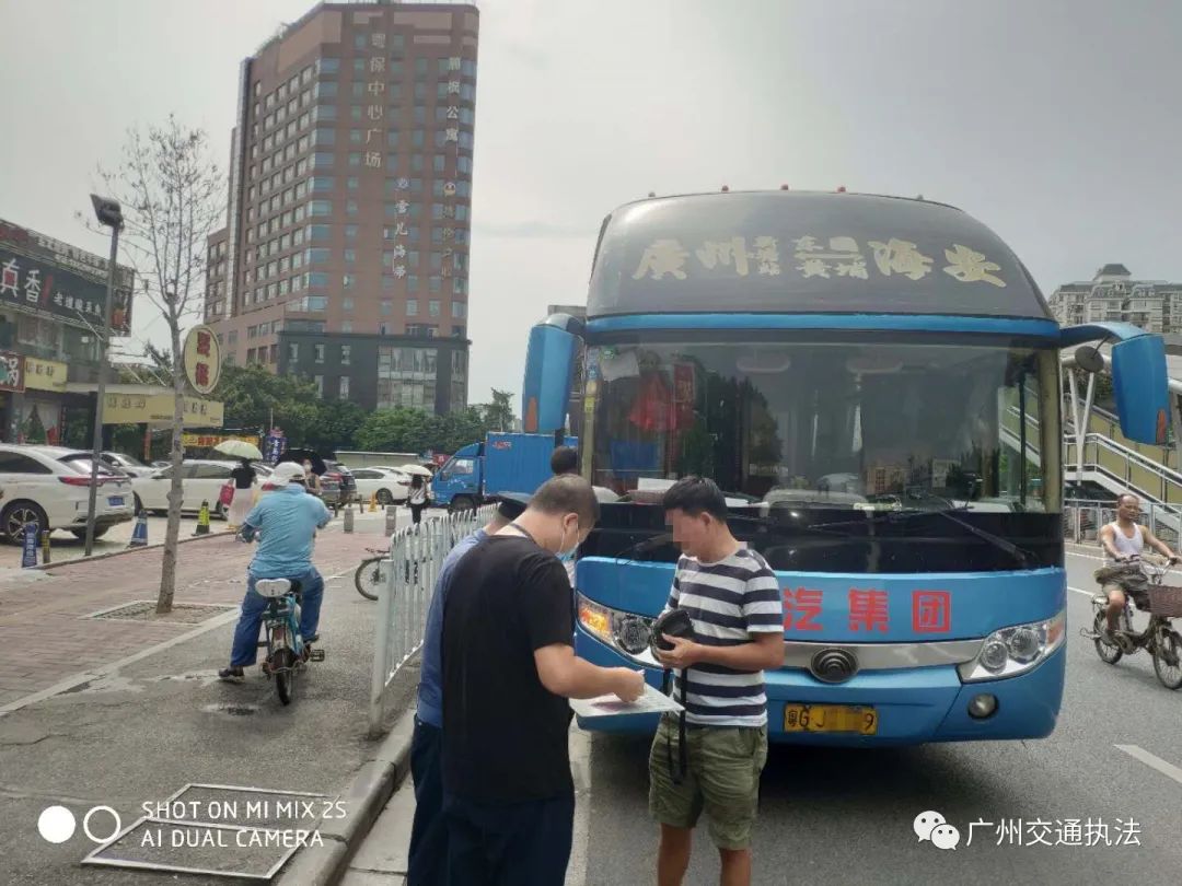 执法人员查处了一辆车牌为粤GJ***9的大客车。被查时该车有20名乘客,据乘客反映,他们由湛江市徐闻乘车到广州大沙地、增城等地。