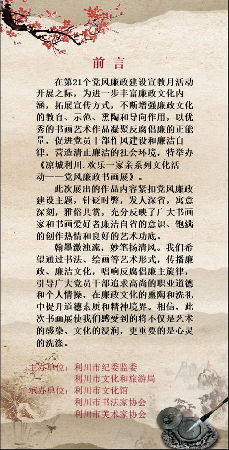 原标题:《【恩施文旅号】开展2020年凉城利川•欢乐一家亲系列文化活动——党风廉政线上书画展》