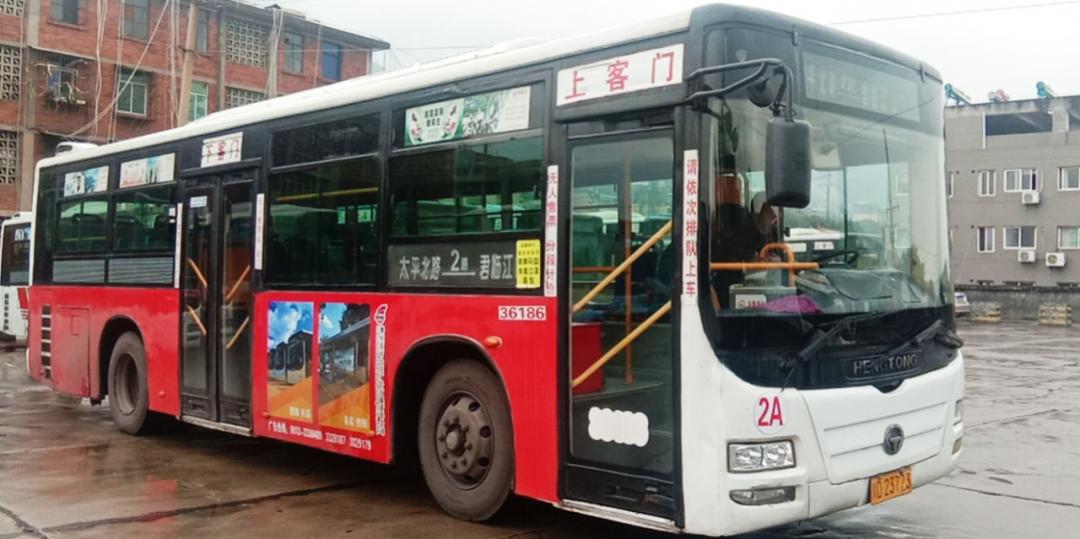 途经站点:太平北路—招待所—陶家渡—花山矿—陶花路—法拉大桥南—法拉大桥北—机电公司—洗煤厂—三十八中小学校—河门口公园—春苗巷—河石坝—建校—玉泉—大水井—玉泉广场—西区政府—市二医院—清香坪—清香坪东街—梨树坪—新庄—何家湾—新庄大桥—施家坪—冷轧厂—李家湾—荷花池大桥南—灰老桥—沙砖厂—客运中心—渡口立交桥—江边街—水文站—公山湾—炳草岗大桥南—攀枝花报社—体育馆—竹湖园·攀大附院—紫荆山—粮食局—金瓯—龙箐大桥西—龙箐大桥东—阳城龙庭—君临江山。2A路班次与2路实行套发。运营票价不变,支持微信、支付宝扫码乘车支付,公交IC卡通用。