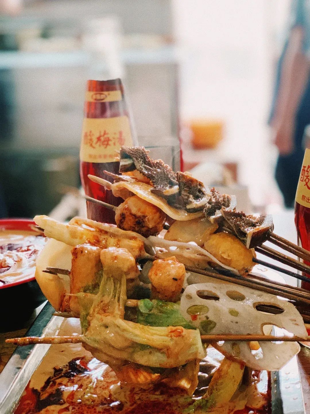 记得吃之前先把串串撸下来,好好搅拌,确保每一个串串都能裹满酱汁,来上一口,简直美味,光想想就已经魂穿食品街了。