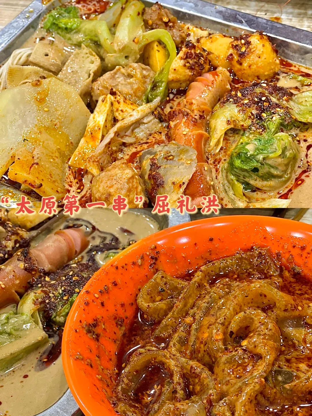 太原的串串老大哥“屈礼洪”,开了35年,是很多人还没出生就在营业的一家“古董店”。中午12点,人逐渐多了起来,所以拿串要趁早。煮好的串放在一个大盘子里,浇着厚厚的芝麻酱,等待食客下肚。